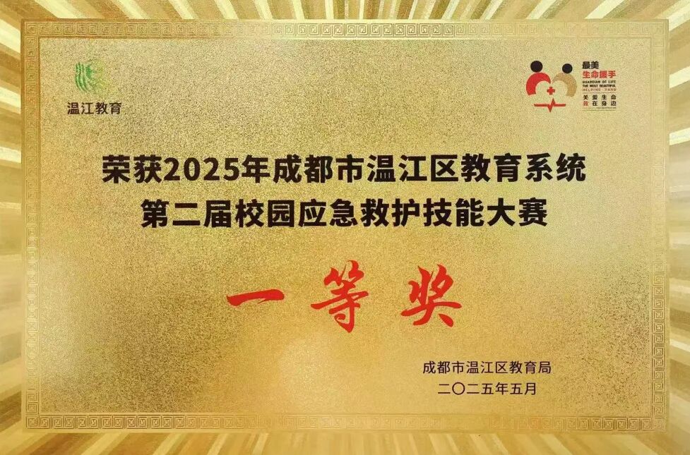5月20日,在成都市温江区教育局主办的第二届校园应急救护技能大赛中,我校参赛队伍荣获一等奖。比赛中,我校参赛队伍迅速反应、明确分工、默契配合,充分展示了校园医护力量扎实的应急处置能力。