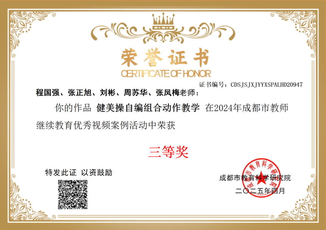 近日,成都市教科院“教师继续教育优秀视频案例活动”揭晓,我校程国强、周苏华等老师获三等奖。