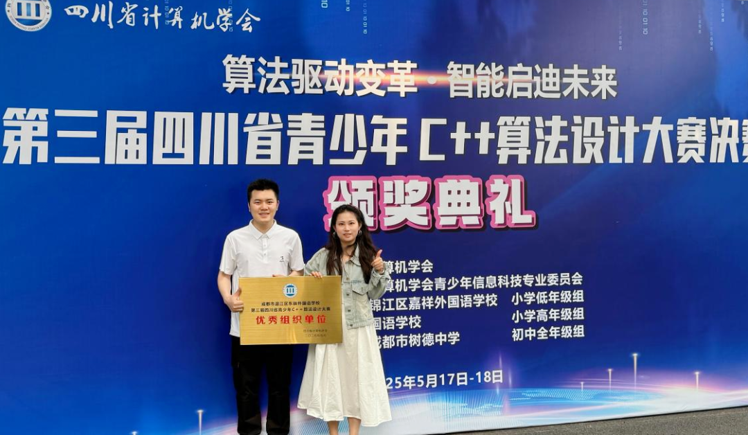 在由四川省计算机学会主办的“第三届四川省青少年C++算法设计大赛决赛”中,我校荣获一等奖1项,二等奖1项,三等奖3项。同时获评“优秀组织单位”。