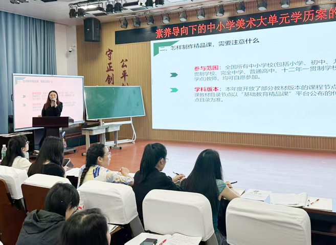 5月27日,美术教师周巧在温江区中小学美术教研活动中作《美育为舟 载梦远航——解锁部优精品课密码》专题讲座。她以教育部优质课《百变团花》为例,围绕“精品课是什么”“怎样制作精品课”“需要注意什么”,为即将参赛的教师进行了详细的内容分享,为区域教师专业发展提供路径,获得教研员及教师的一致好评。