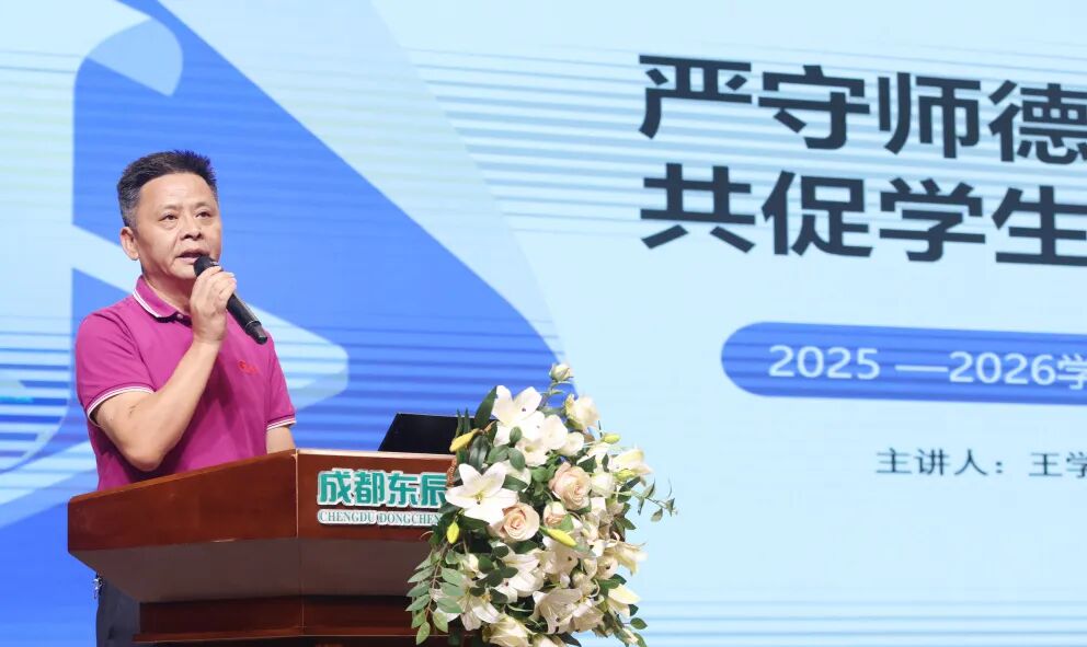 学校党委副书记、纪委书记王学林解读了《四川省中小学师德评价考核办法》,结合实际,对“坚定政治方向”“自觉爱国守法”等十大要点进行了强调。