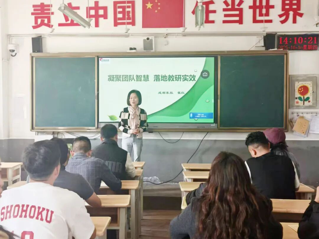 傅丽老师执教六年级数学《比的意义》示范课,巧妙运用情境教学与数形结合策略,生动诠释了概念教学的有效方法。崔红老师作《凝聚团队智慧,落地教研实效》专题讲座,系统分享我校“集体研备”教研模式,为昭觉教师提供可复制的教研实施路径。杜春蕾老师深入课堂听课指导,并开展英语示范课教学,通过评课议课和专题讲座,针对性解决初三英语复习备考难题。