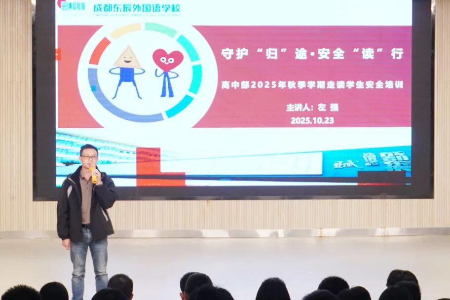 10月23日,高中部在弘文学术厅组织召开走读生安全培训会,通过系统化的德育课堂,教授学生交通法规、应急处理与自我防护等实用安全知识,提升学生安全防护能力,进一步织密校园安全防护网。