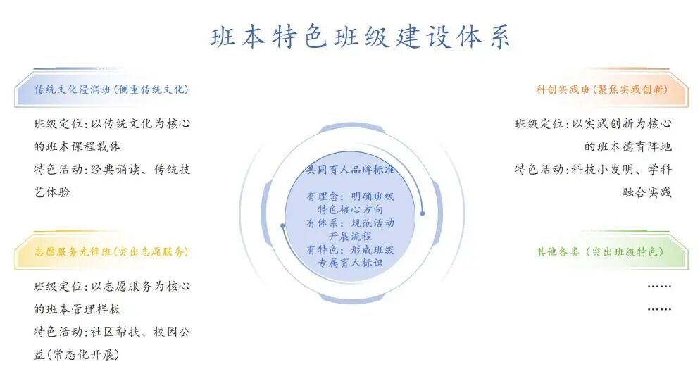在 “五位一体” 班本教育体系基础上,结合班级核心优势与学生特长,打造差异化班级特色。