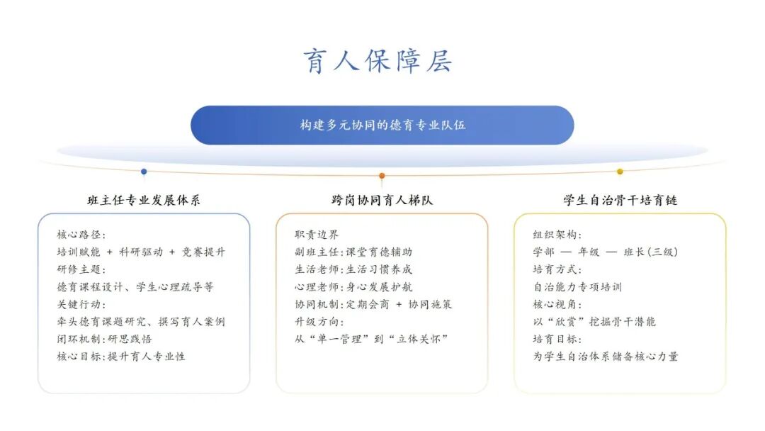 明确副班主任 “课堂育德辅助”、生活老师 “生活习惯养成”、心理老师 “身心发展护航” 的职责边界,建立 “定期会商 + 协同施策” 机制,实现德育从 “单一管理” 向 “立体关怀” 升级。