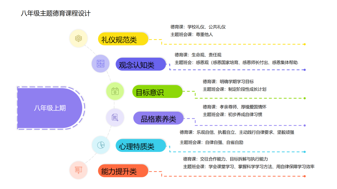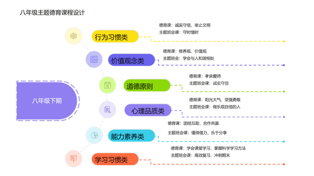 推进德育课、班会课 “序列化” 建设,按年级划分 “道德认知、责任担当、心理健康、法治意识” 等主题模块,确保思想引领有体系、有深度。