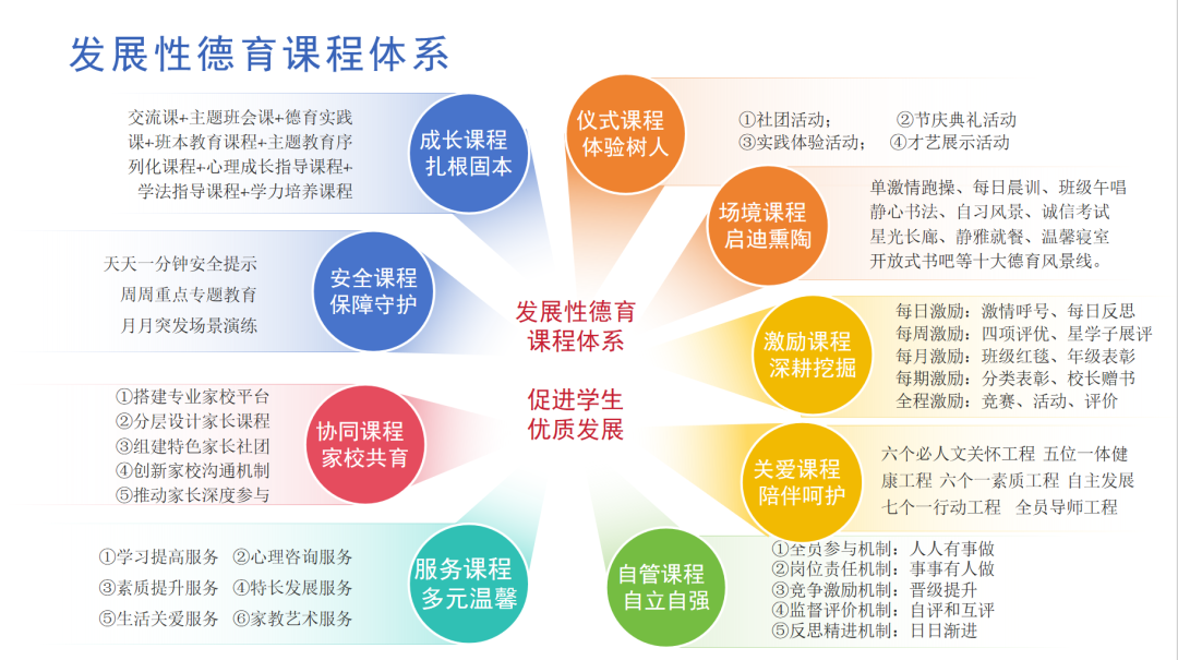 摒弃单纯 “说教” 式德育,以 “课程化” 为载体,将德育融入多场景,促进学生道德、身心、能力、学业、综合素质协同发展。