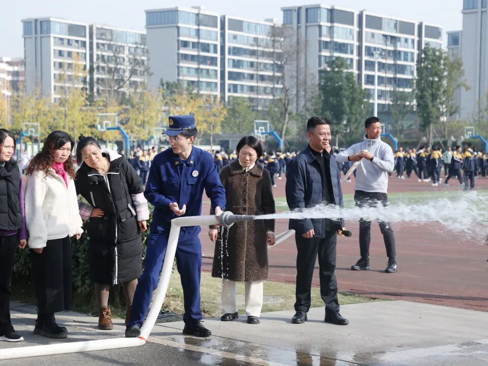 11月20日,在温江区消防大队的指导下,我校安保处组织高一年级全体师生开展火灾应急疏散演练及消防技能实践活动。此次活动切实提升了学部在突发公共事件中的组织效能,增强了同学们的风险防范意识、锻炼了同学们应急反应能力,为筑牢校园安全防线奠定了坚实基础。