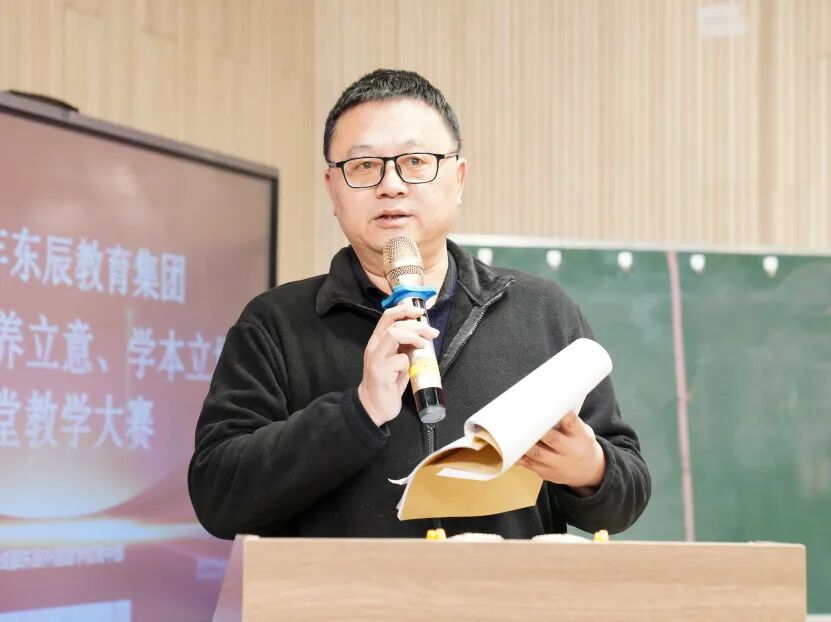东辰教育研究院李开贵副院长对赛课活动进行了全面总结。他充分肯定了参赛教师们高度的专业素养与创新精神,赞扬本次大赛充分体现了“素养立意、学本立场”理念,展现了东辰教师在课堂教学改革中的深度思考与实践成果,为构建高效课堂提供了丰富范例,为推动集团教学质量提升注入了新的活力。