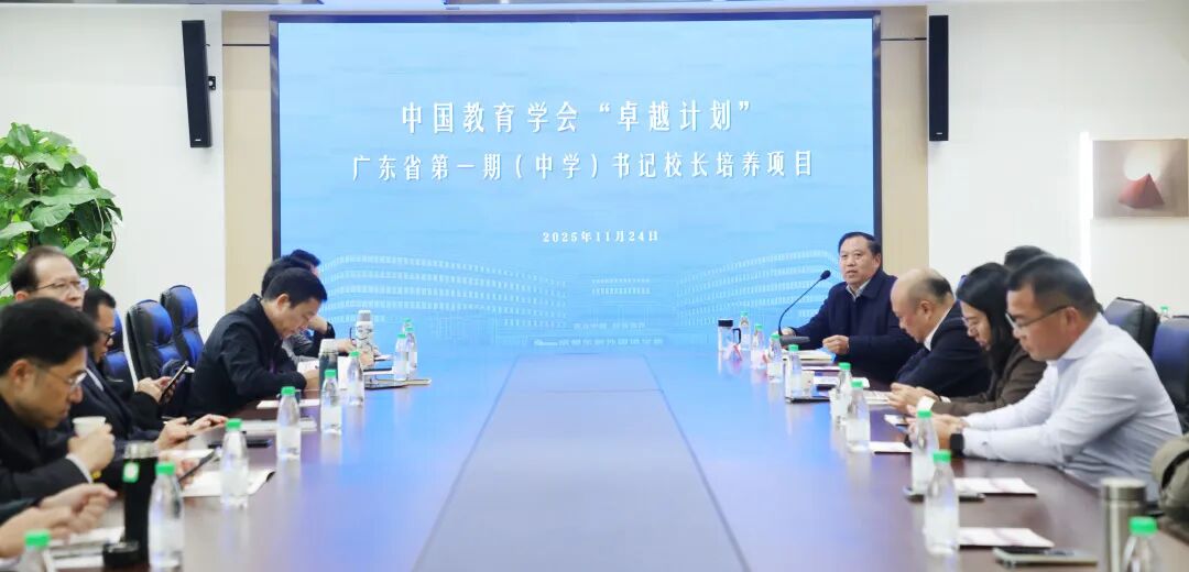 11月24日,中国教育学会“卓越计划”广东省第一期(中学)书记校长培训项目学员到我校参观交流。参观团一行先后参观了学校教学区、“为先”美术馆、科创中心、菲尔兹·数学馆等特色场馆,深入了解学校育人环境和文化建设。