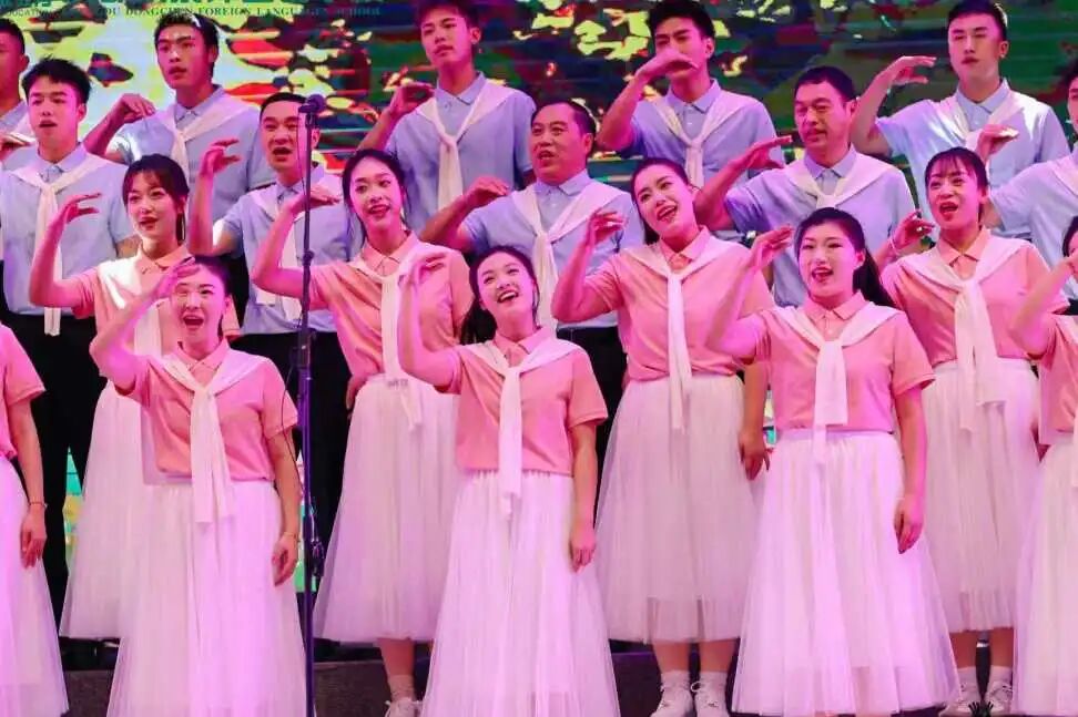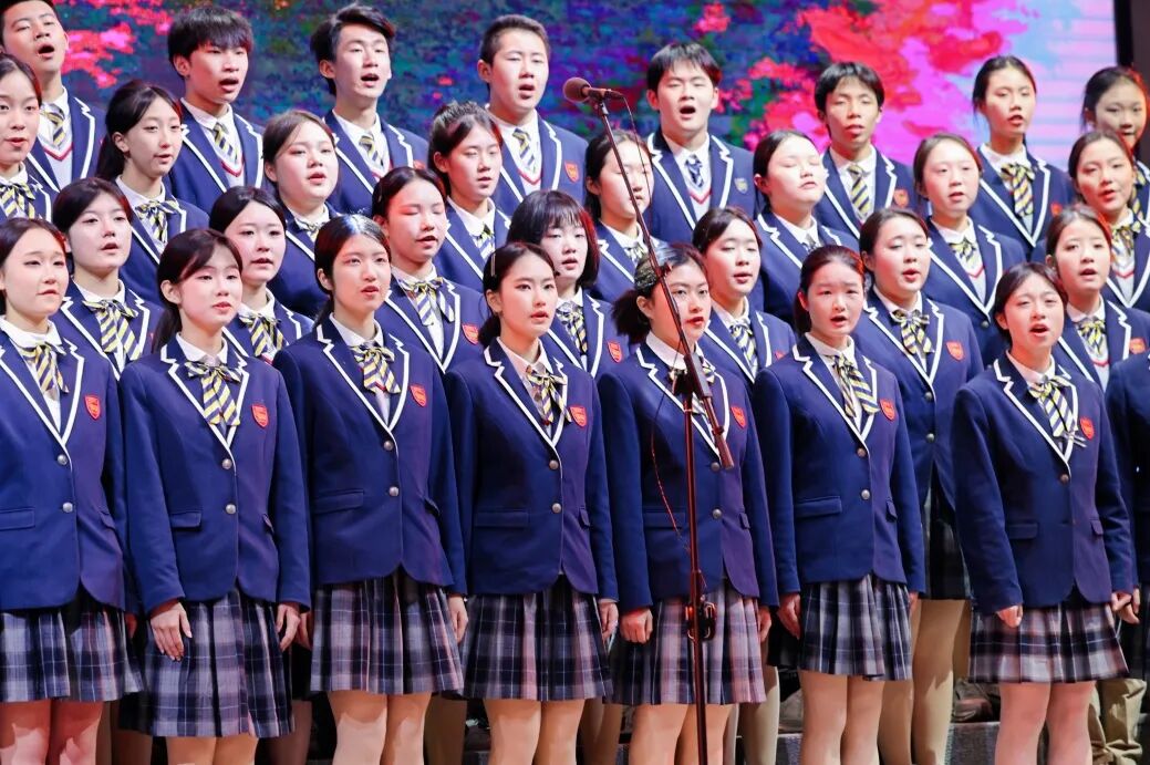 师生员工、家长代表齐聚一堂,小、初、高学部和行政后勤中心、特长发展中心师生员工共16支队伍参赛,学校咪雅家长合唱团、金笙合唱团、校友合唱团倾情助演,以嘹亮歌声礼赞砥砺奋进的往昔,以激越旋律憧憬无限可能的未来。
