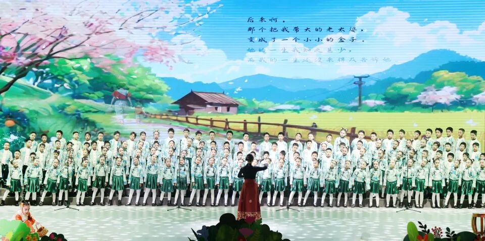 咪雅家长合唱团用悠远旋律勾勒家校深情,深沉似秋水长天。