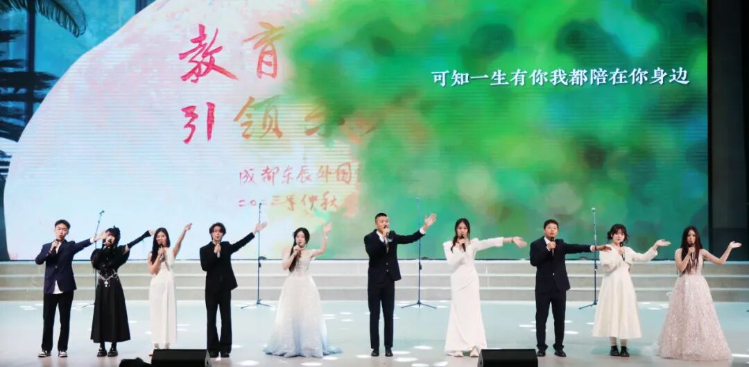 本次歌会特邀四川省骨干教师、四川省合唱协会副会长文汇,教育学博士、成都大学音乐与舞蹈学院艺术实践中心主任于鑫平,四川省优秀教师、四川省艺术学科带头人黄玉蓉,成都市优秀青年教师、成都市教育学会音乐教学专委会理事马玥,天府新区优秀美育教师冯诗洋担任评委。东辰教育集团总经理衡雄志;东辰教育集团总校长,学校党委书记、校长杨建平以及全体校委会成员莅临指导。