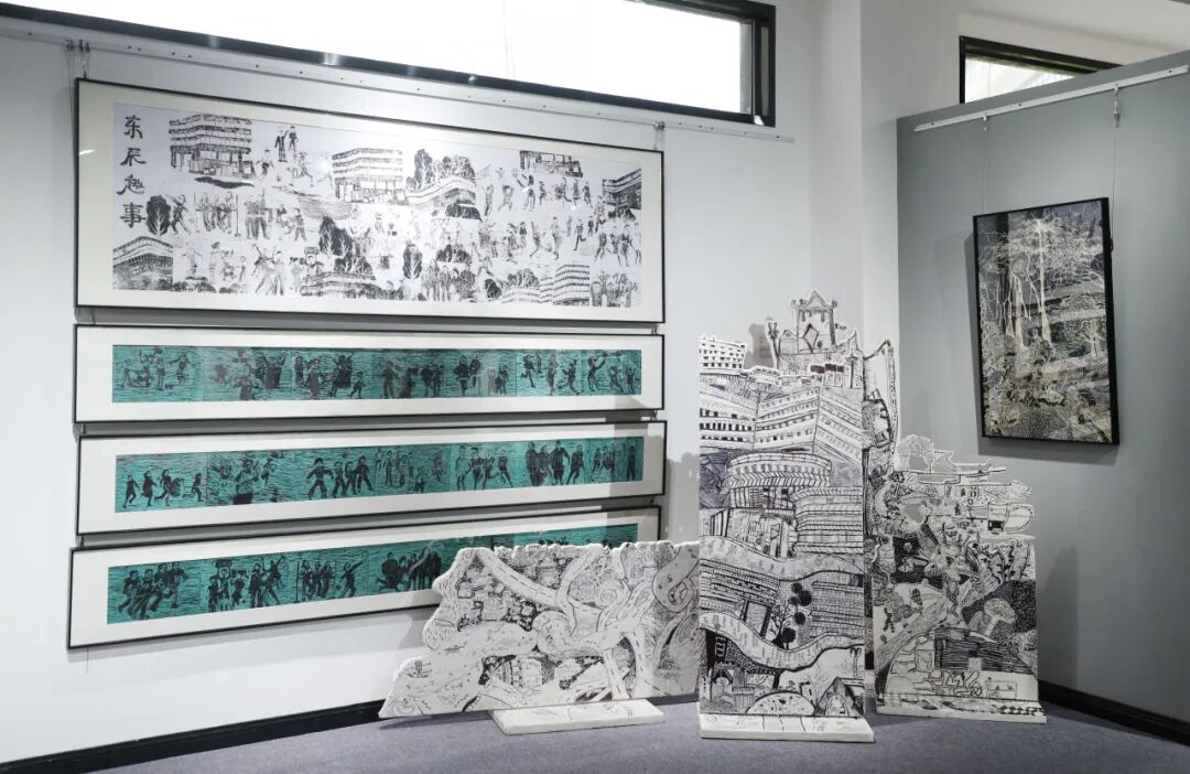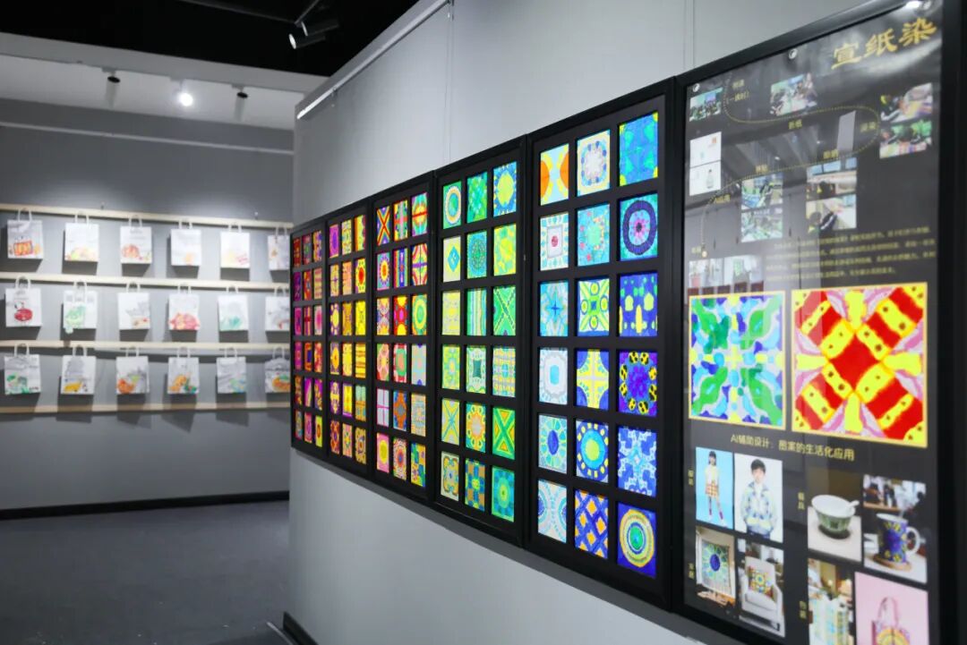 本次展览以“AI赋能美育全链条”为核心亮点,从创作前期的创意激发、中期的作品优化,到后期的动态呈现,让科技贯穿艺术实践全程,集中呈现小、初、高全学段近千件跨界佳作,涵盖水墨、版画、装置、陶艺、数字艺术等多元形式,生动诠释了传统与现代交融共生的教学新貌。