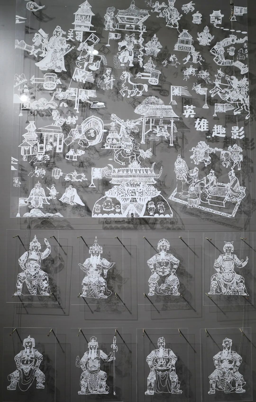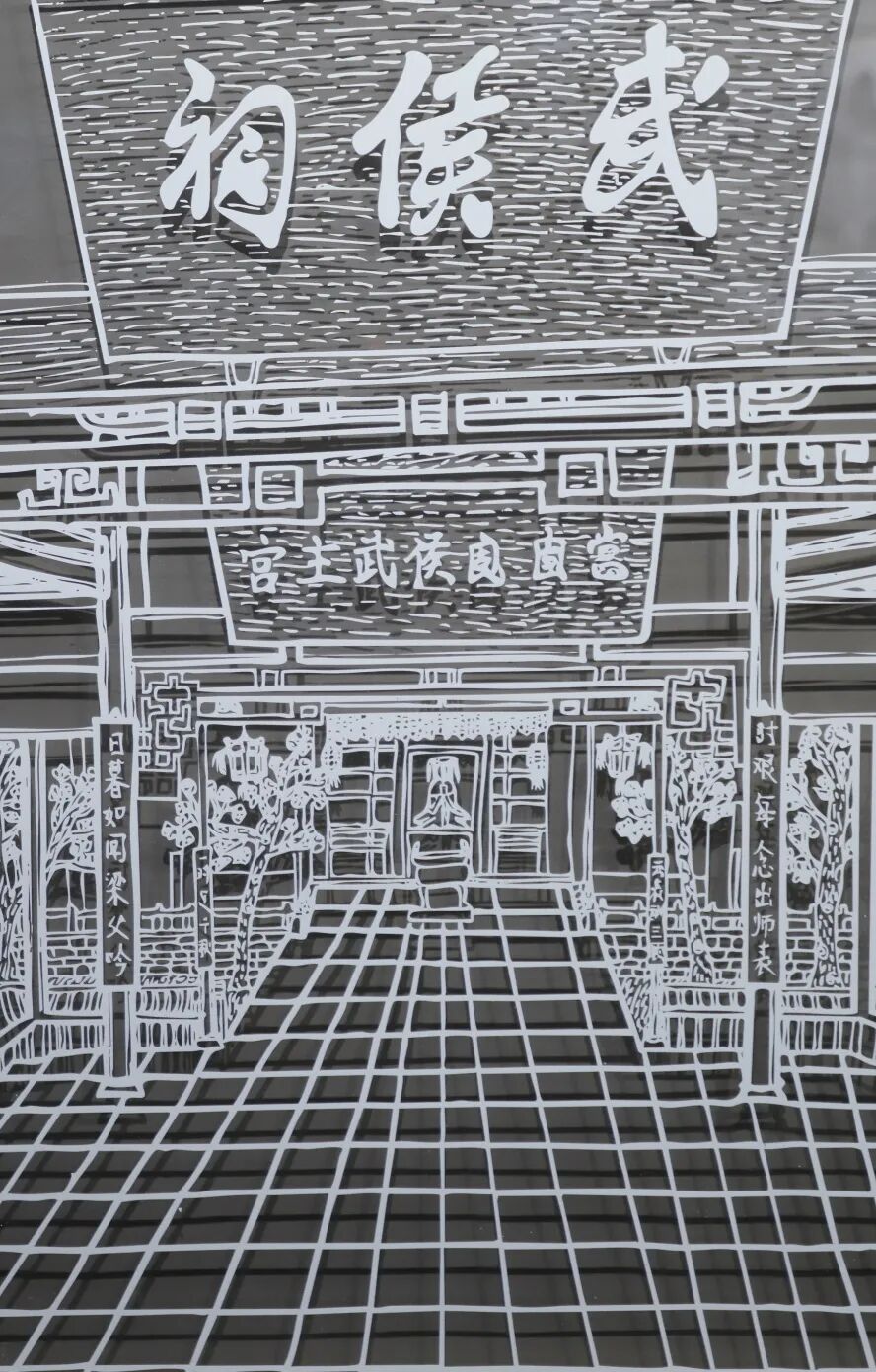 创作结合五年级“武侯祠研学”课程,利用装置联动系统和AI动态可编程LED光影,对作品进行多形式呈现,当观众走近时,静态装置即刻“苏醒”。光色流转间演绎蜀汉典故,打造出“可步入的蜀汉历史画卷”。