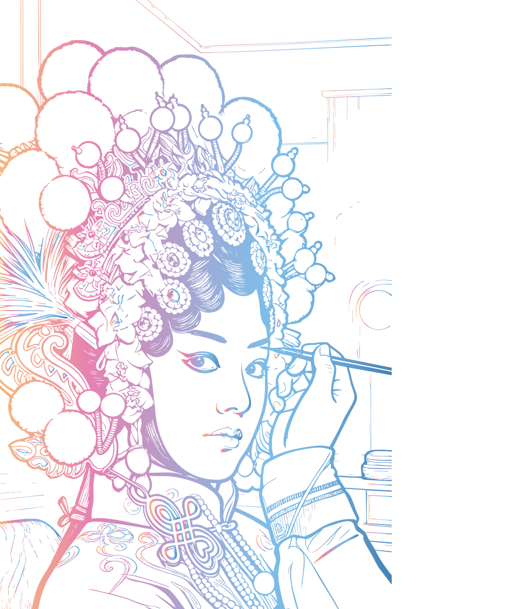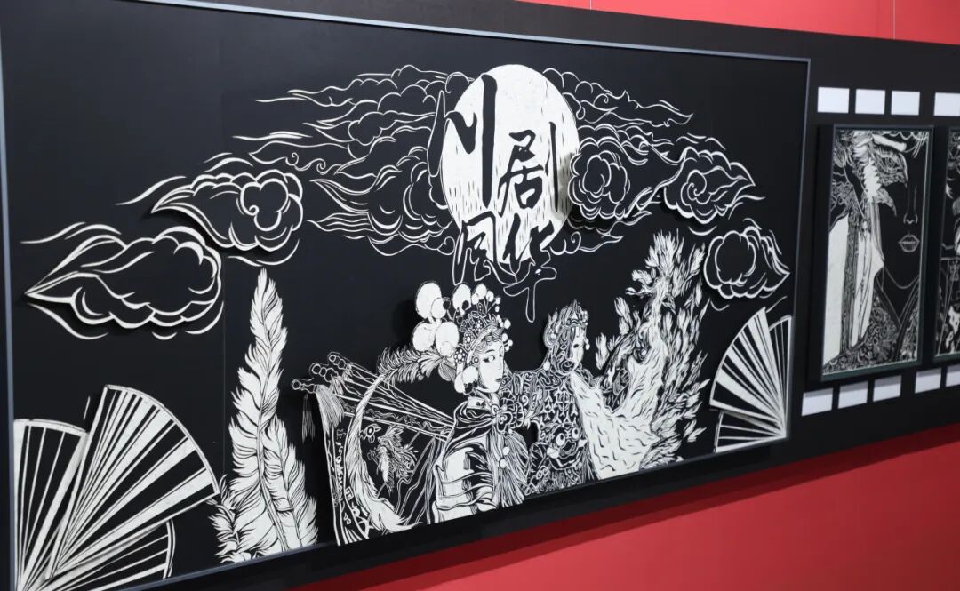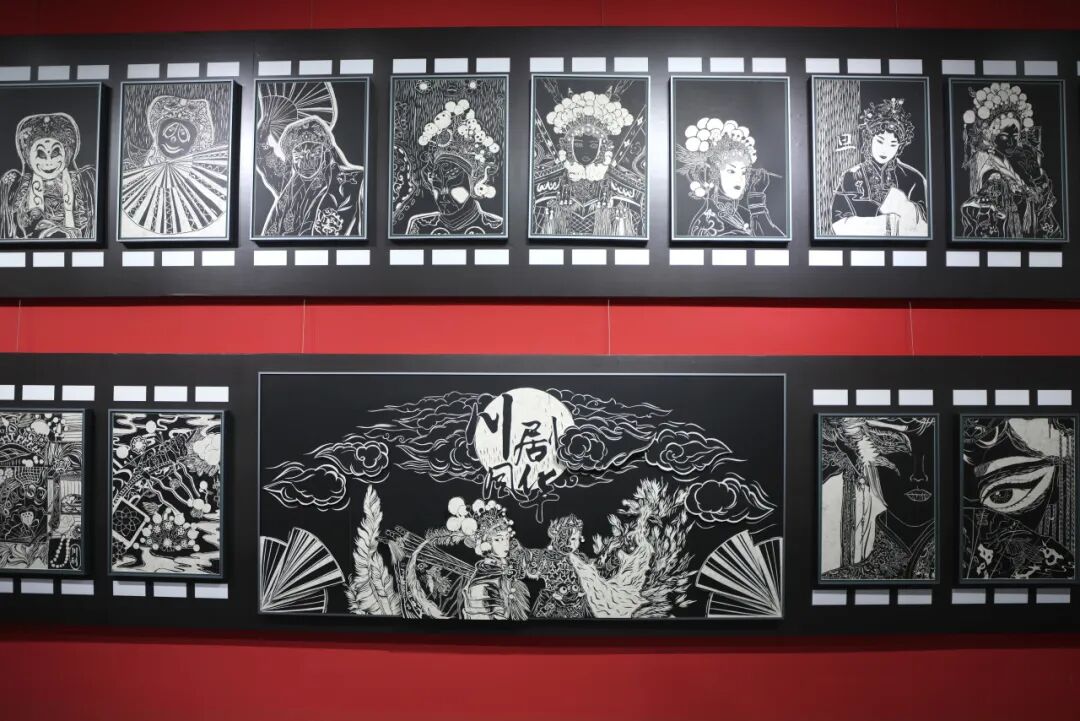 展览聚焦川剧艺术为核心创作脉络,通过川剧典型的脸谱纹样、特技视觉符号塑造核心视觉;同时以京剧为辅助,融入其经典脸谱造型与戏剧扮相设计元素,实现两大剧种的艺术融合呈现。