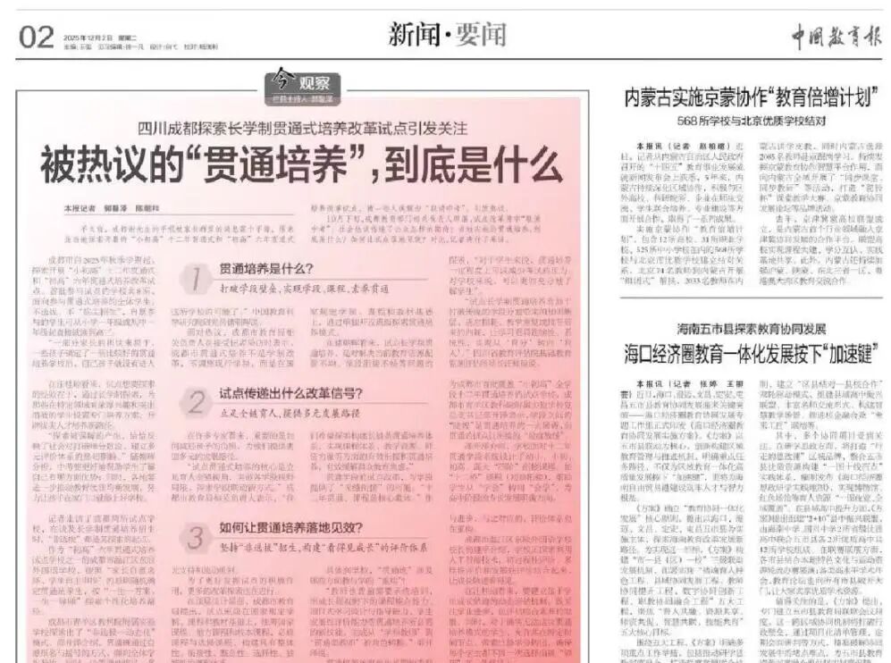 2025年11月,中国教育学会班主任专业委员会学术年会在我校举行,来自全国的专家学者、学校管理人员、优秀班主任代表1700人参会,中国教育学会常务副会长、教育部基础教育司原司长吕玉刚等领导专家作了学术报告,清华大学附属小学、中国人民大学附属小学、重庆育才中学等单位介绍了育人经验。